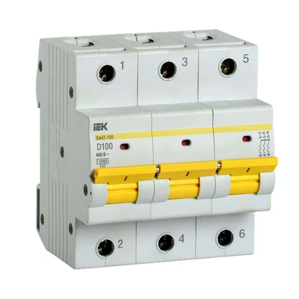 Автоматический выключатель IEK ВА47-150, 3p, 100A, D, MVA50-3-100-D