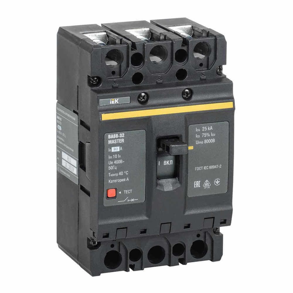 Автоматический выключатель IEK ВА88-32, 3Р, 80 А, 25 кА, MASTER, SVA10-3-0080-02