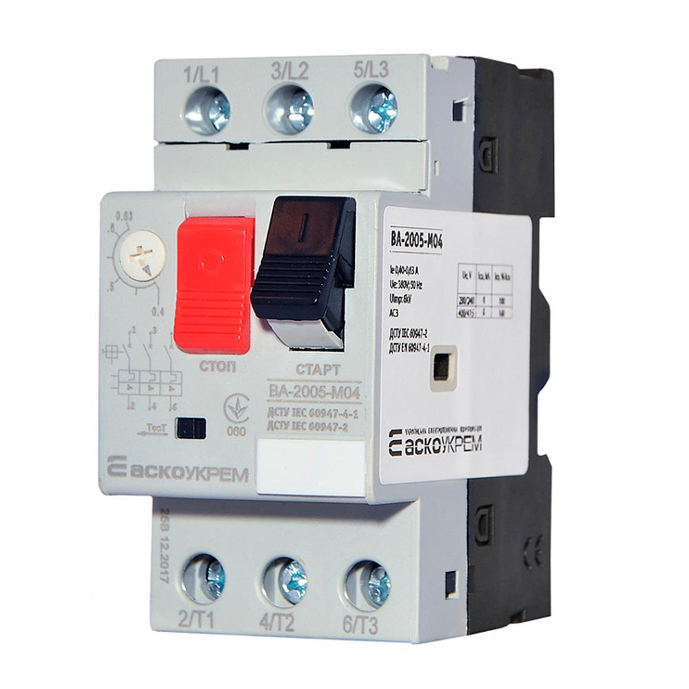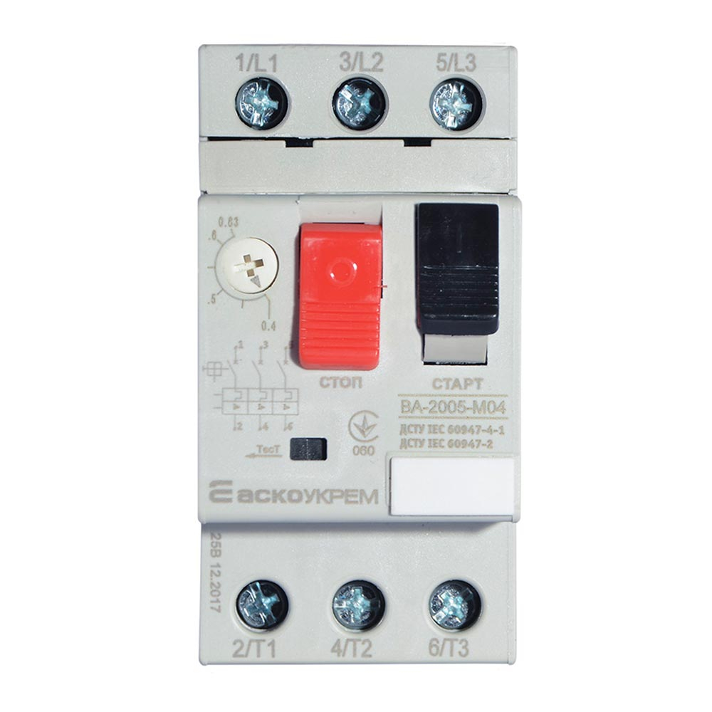 - Диапазон установок теплового расцепителя - 0,40...0,63 А