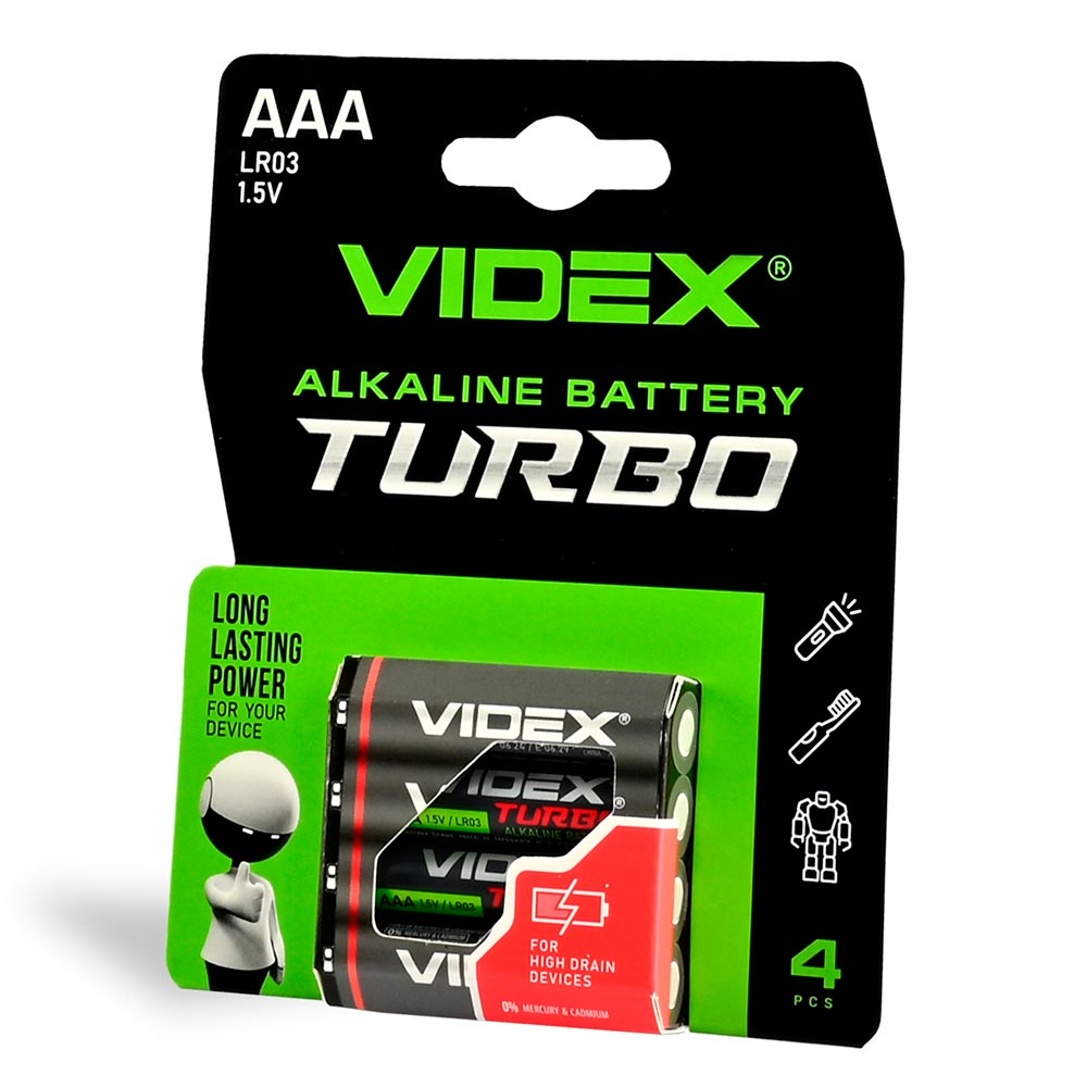 Батарейка щелочная VIDEX LR03/AAA Turbo 4шт blister (цена за 1шт), 27021
