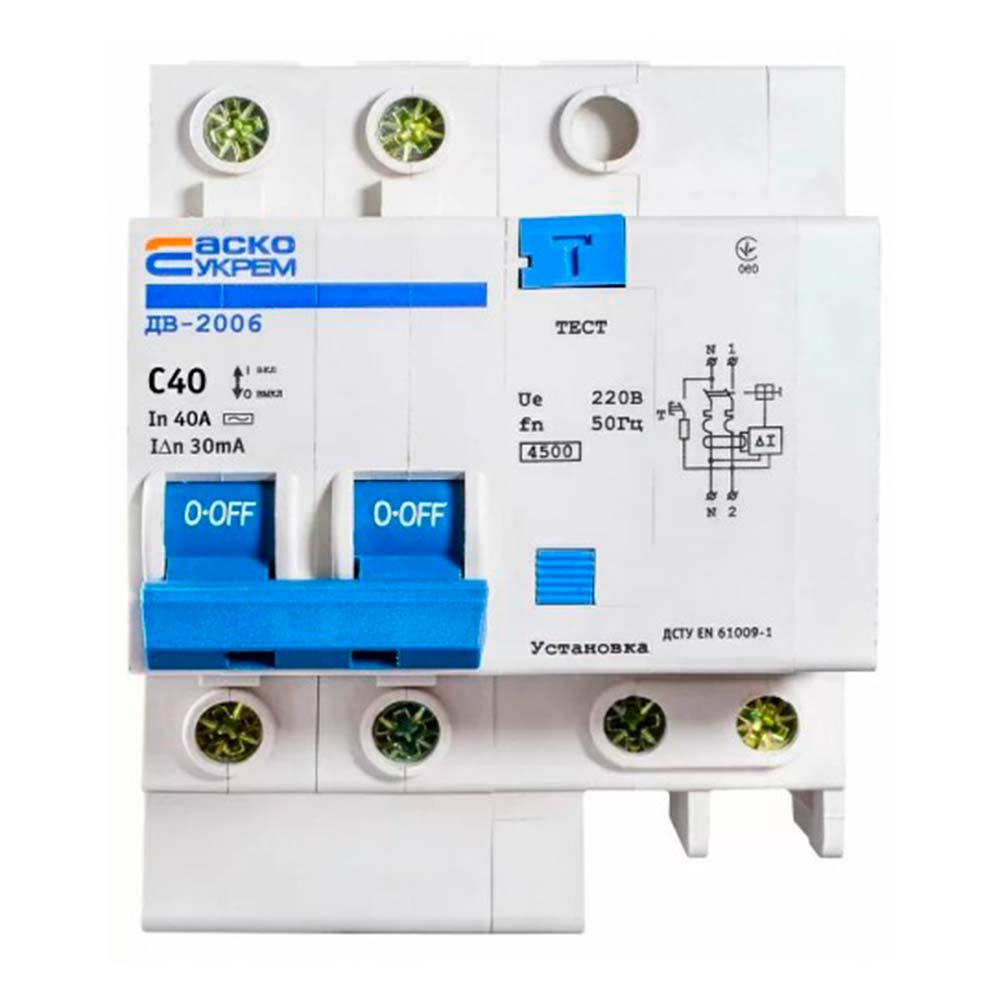 Автоматический выключатель дифференциального тока АСКО-УКРЕМ ДВ-2006, 2р, C 40А/30мА, A0030030004