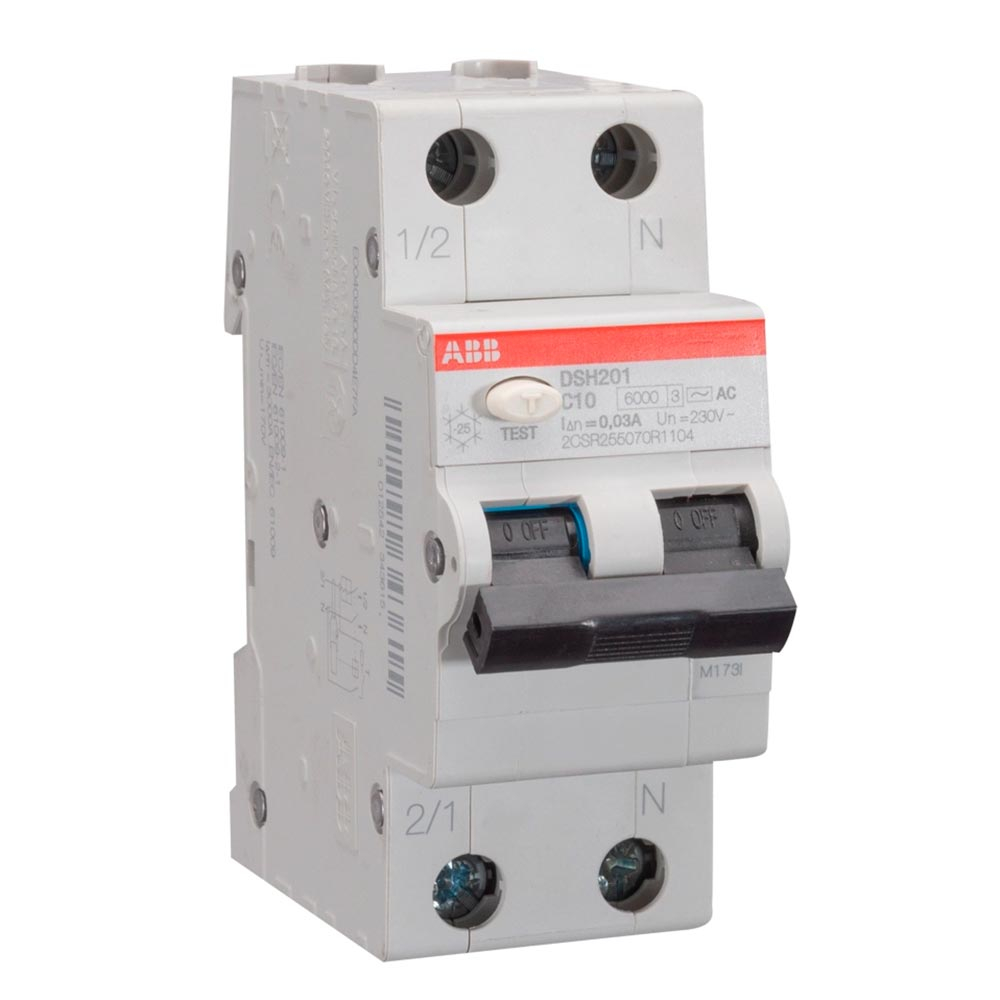 Дифференциальный автоматический выключатель ABB DSH201-C10, A, AC 30 mA, 6 kA, 2CSR255070R1104