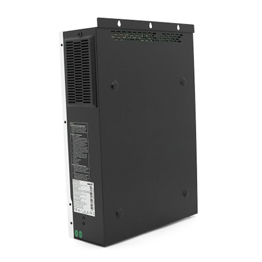 номинальная мощность – 3600 Вт, напряжение аккумуляторной батареи – 24 В, максимальный ток зарядки от сети – до 60 А, тип солнечного контроллера – MPPT, максимальный ток MPPT‑контроллера – до 100 А, диапазон входного напряжения от солнечных панелей (DC) – 30–32 170-280 В, форма выходного напряжения - чистая синусоида,