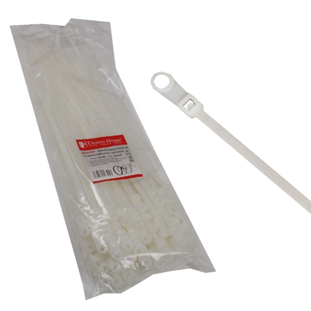 Хомут кабельный с кольцом Electro House, EH-R-004, 8х400 белый