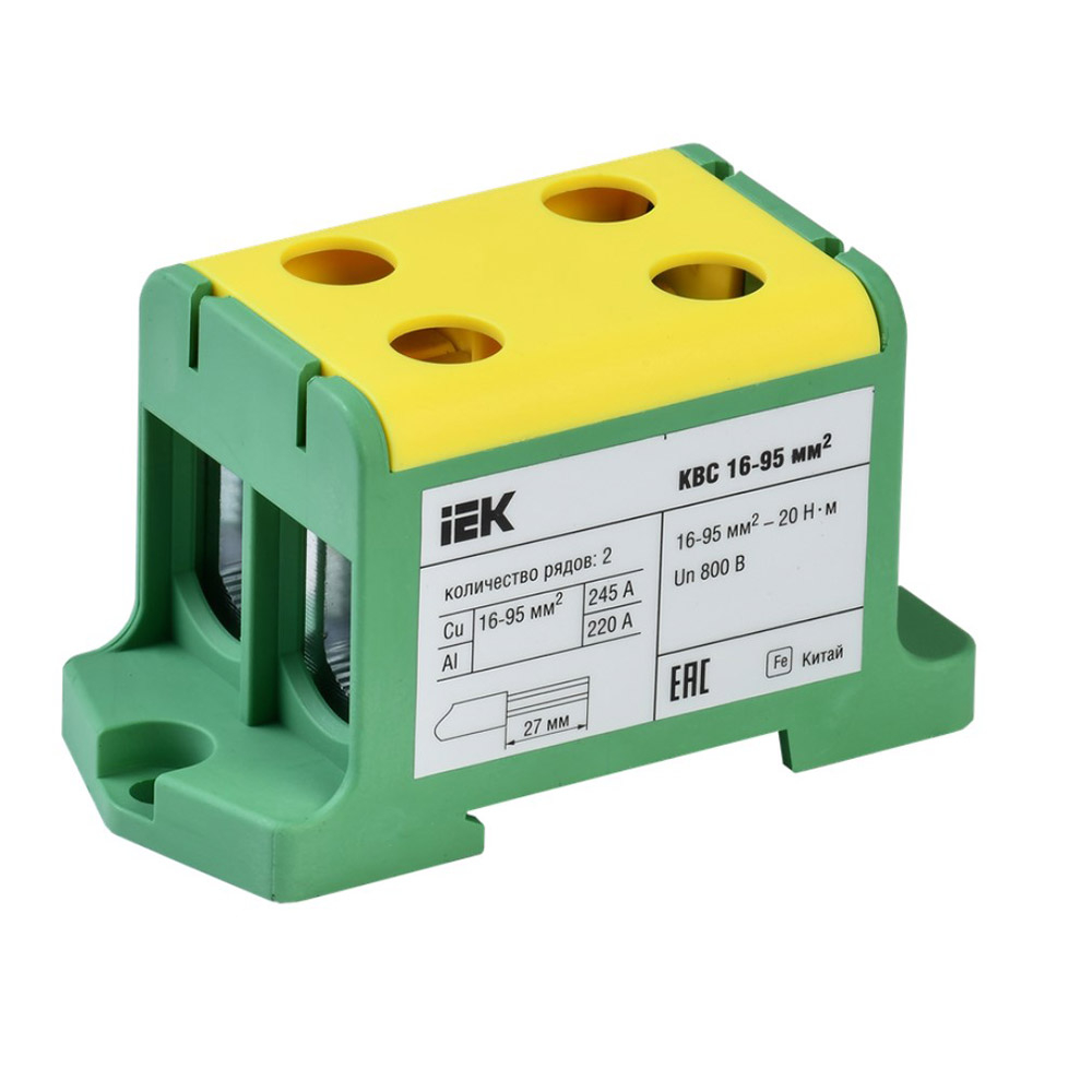 Клемма вводная силовая КВС 6-50 мм2, 2-рядная PE, IEK YZN23-050-K52