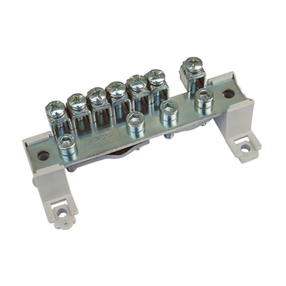 Эквипотенциальная клеммная колодка предназначена для основного или дополнительного соединения в домовых и промышленных распределителях. Соединительную часть клеммной колодки образует Мс мостик со стальными клеммами и пластинкой для захвата основного заземляющего провода или стального троса. Во избежание выпадения с мостика клеммы зафиксированы механически. Весь мостик заключен в двух изоляционных корпусах из термопласта: