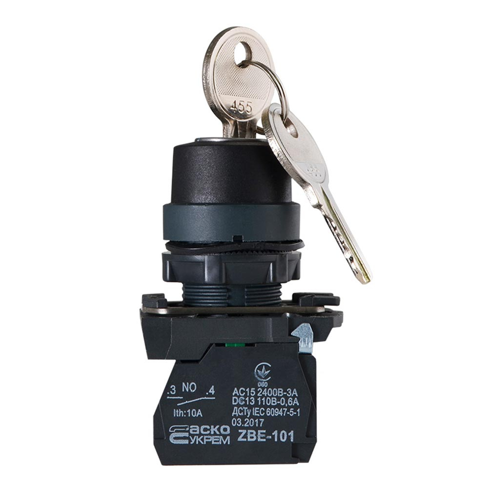 Кнопка TB5-AG41 поворотная с ключом 2-х позиционная, ACKO-УКРЕМ, A0140010154