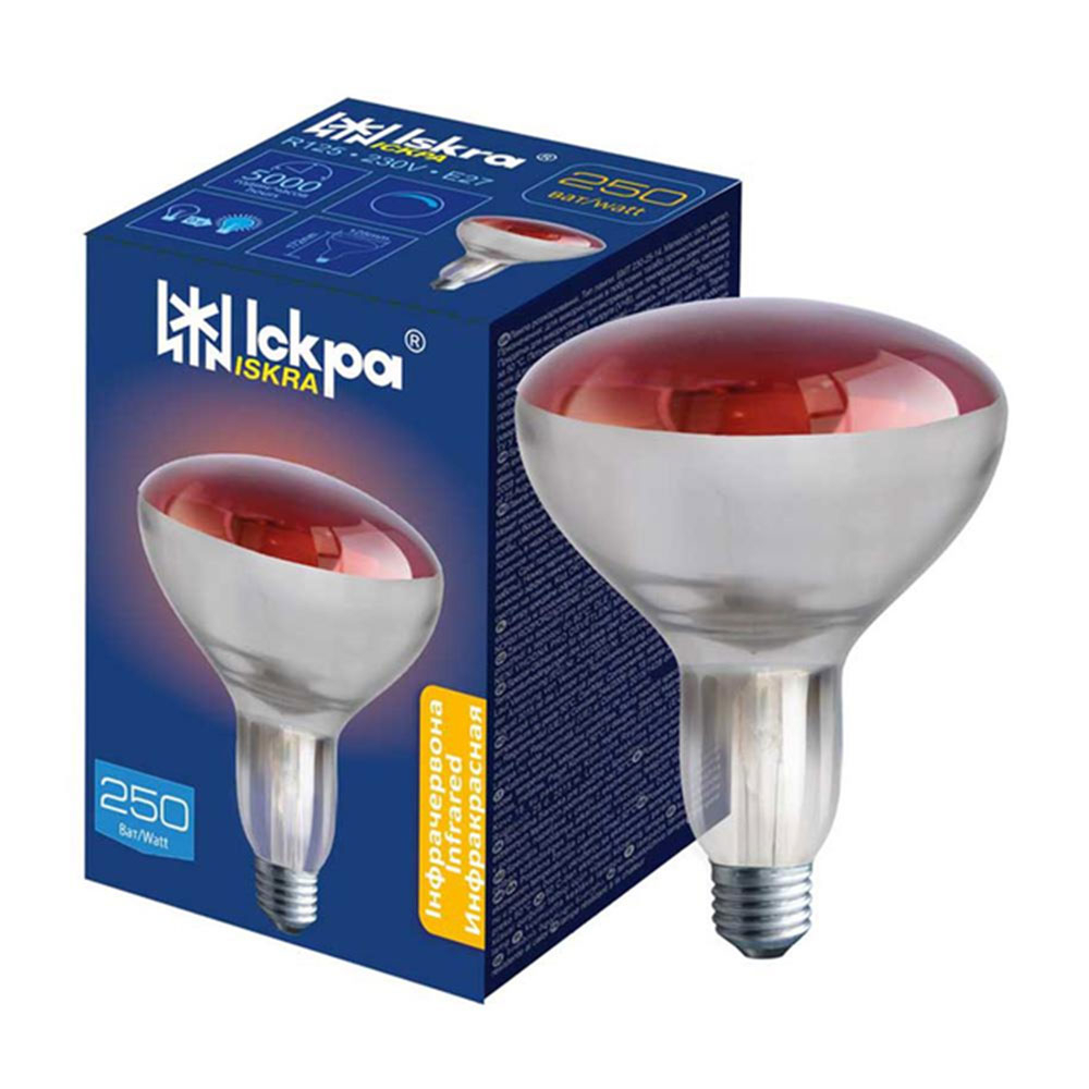 Лампа инфракрасная ИКЗК Іскра 250Вт, R125, Е27, в индивидуальной упаковке