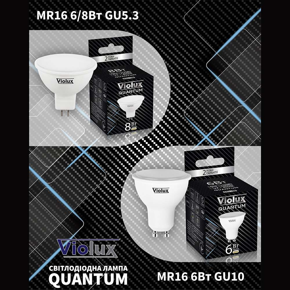 Лампа LED VIOLUX QUANTUM MR16, 8W, GU10, 38°, 6400K, 812242