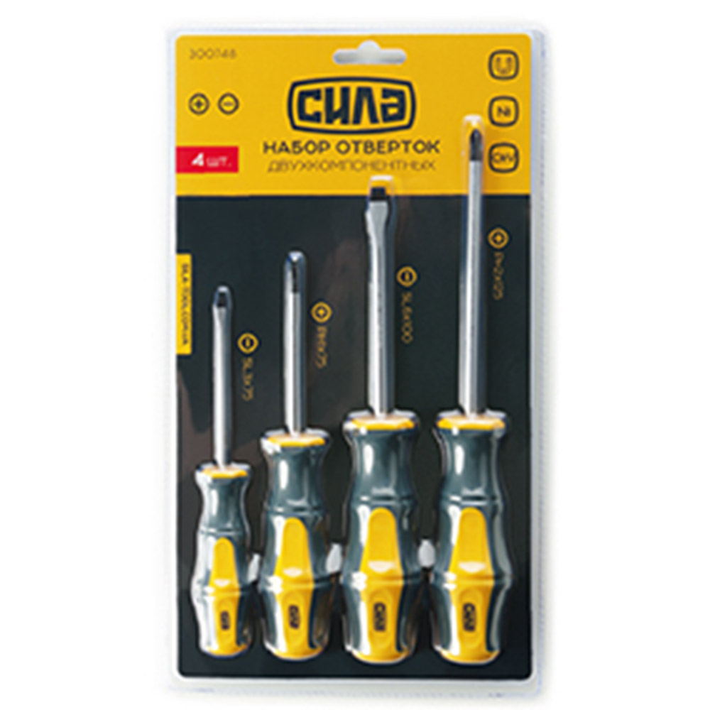 Набор отвёрток обрезиненных 4шт, СИЛА 300748