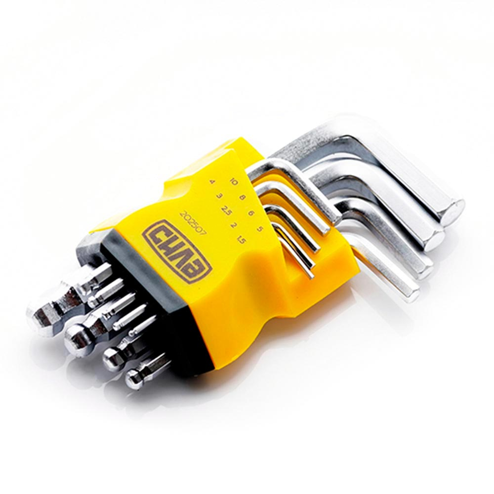 Набор шестигранников СИЛА 1,5, 2, 2,5, 3, 4, 5, 6, 8, 10 коротких с шариковым наконечником, CrV, 9шт