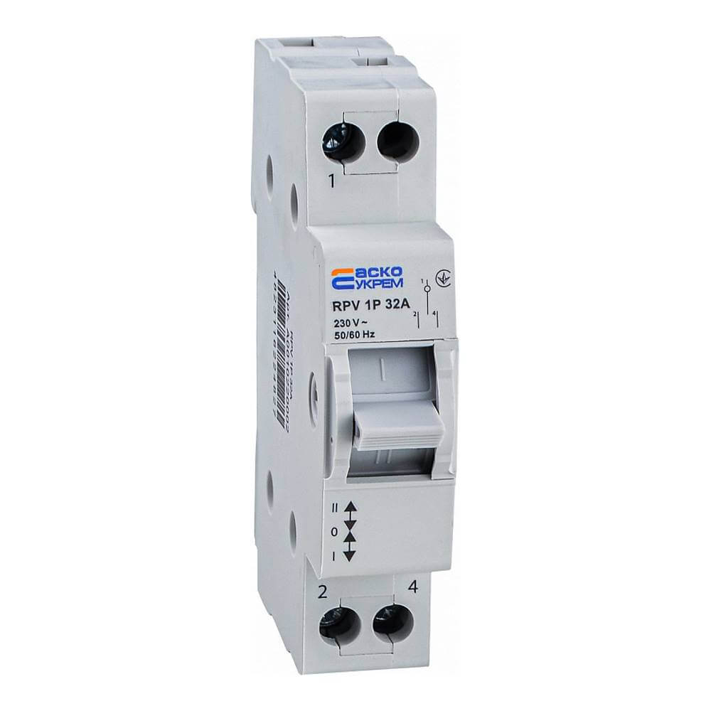 Ручной переключатель ввода резерва АСКО-УКРЕМ RPV 1P 32A, І-0-ІІ, перекидной
