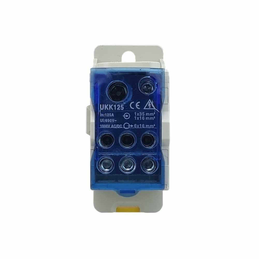 Распределительный блок РБД-125А — предназначается для монтажа на DIN-рейку или на монтажную панель как в силовых шкафах, так и в квартирных щитах, для работы в сетях с напряжением до 1000 В частоты 50 Гц при температуре окружающего воздуха от –40 до +70 С.