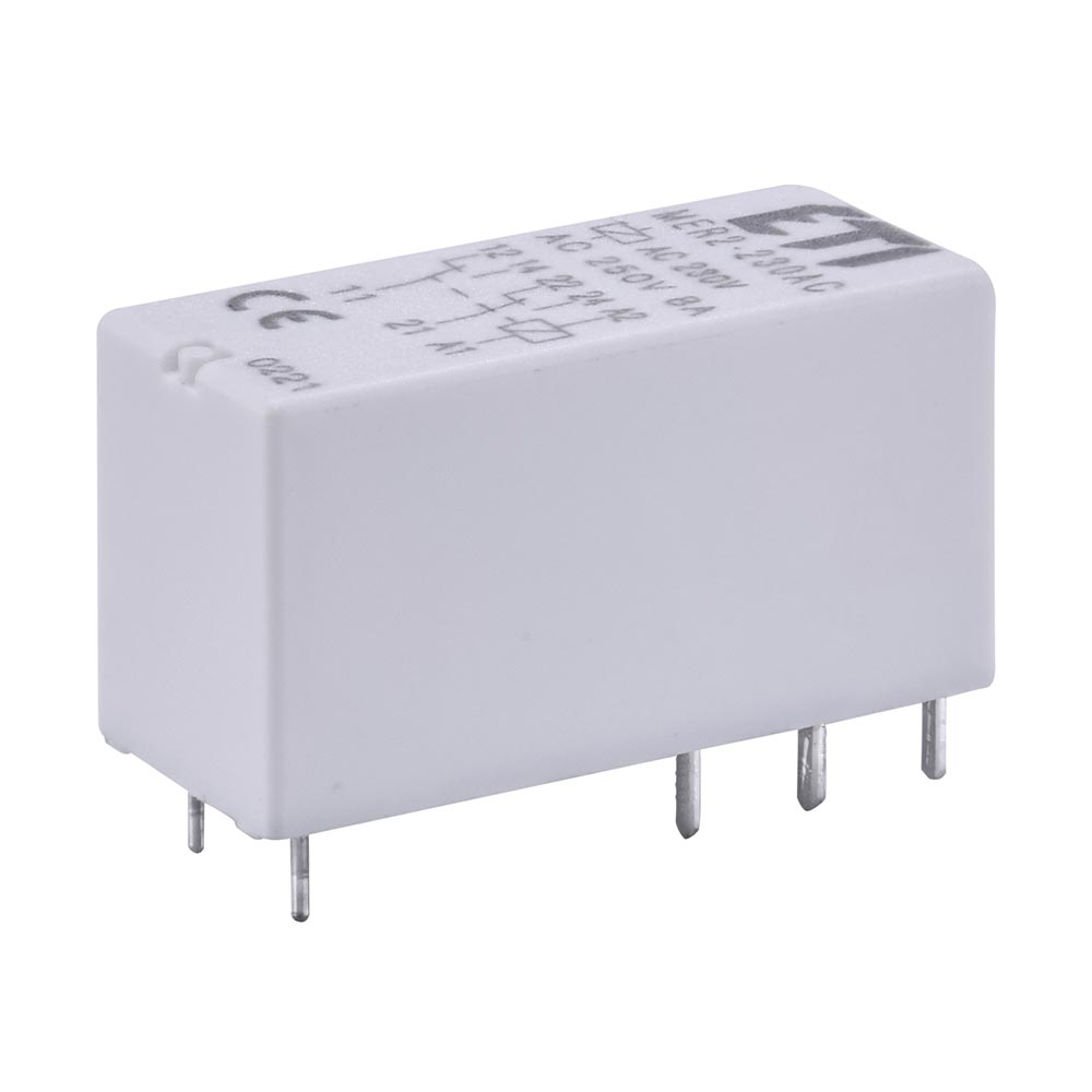- MER2 – 2 перекидных контакта, In= 8A AC1, 250V AC;