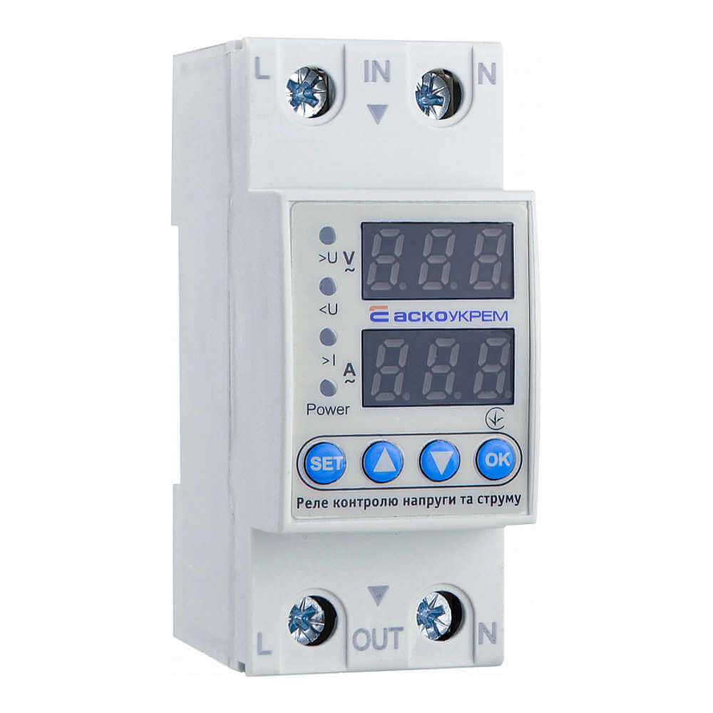 Основные функции реле контроля напряжения и тока АСКО RKV 2P 40A :