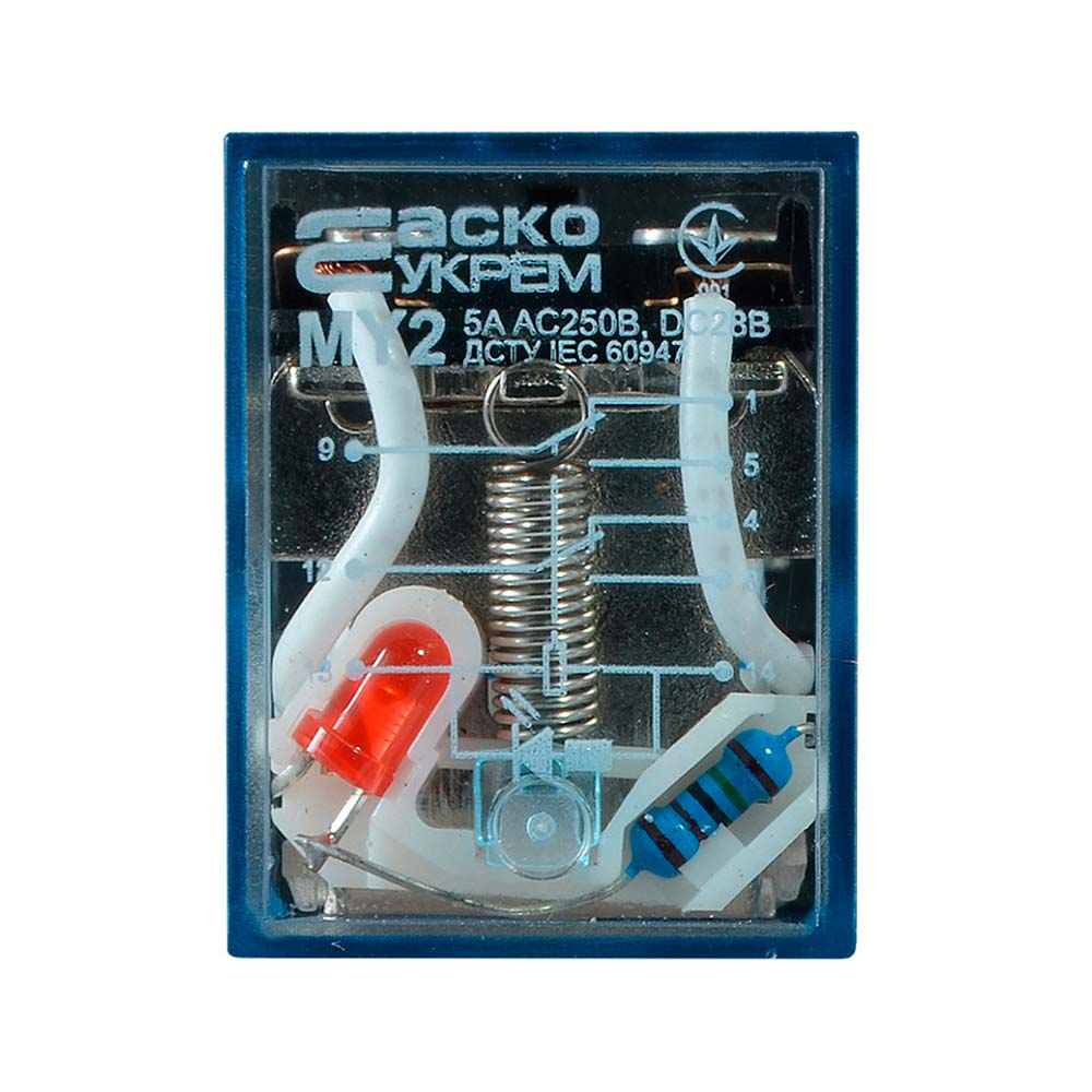 Реле промежуточное АСКОУКРЕМ MY2, АС 24 В, 5 А, 2CO (DPDT), A0090010006