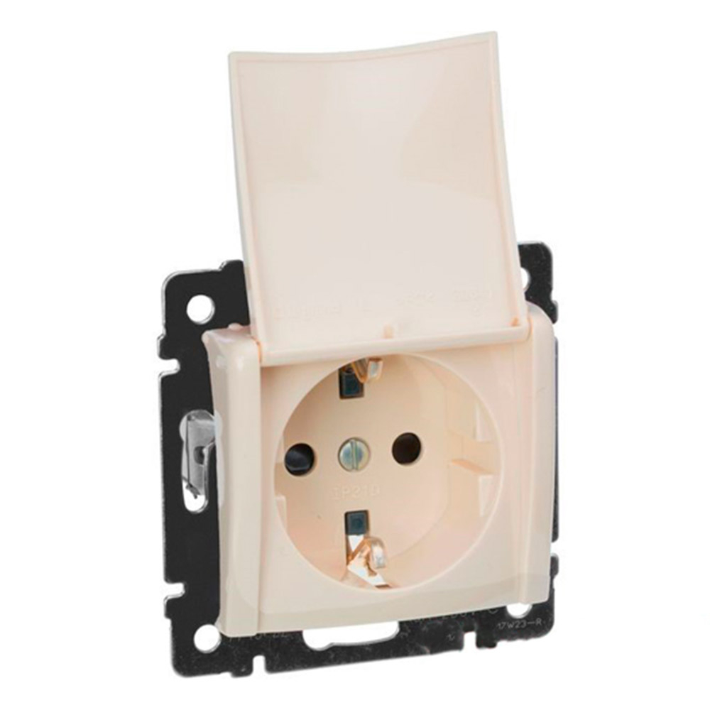 Суппорт розетки изготовлен из оцинкованной стали. Контактная группа - AgNi (без содержания кадмия, являющегося элементом загрязняющим окружающею среду). Цвет лицевой панели розетки: Слоновая кость (RAL 1013).