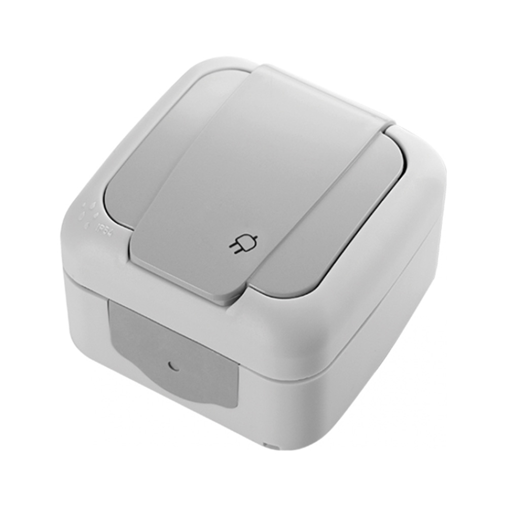 Корпус изготовлен из высококачественного термостойкого поликарбоната, крышка розетки произведена из ABS-пластика серого цвета. Встроенные защитные манжеты обеспечивают корпусу хорошую влагозащиту. Розетка для открытой проводки монтируется на ровную стеновую поверхность.