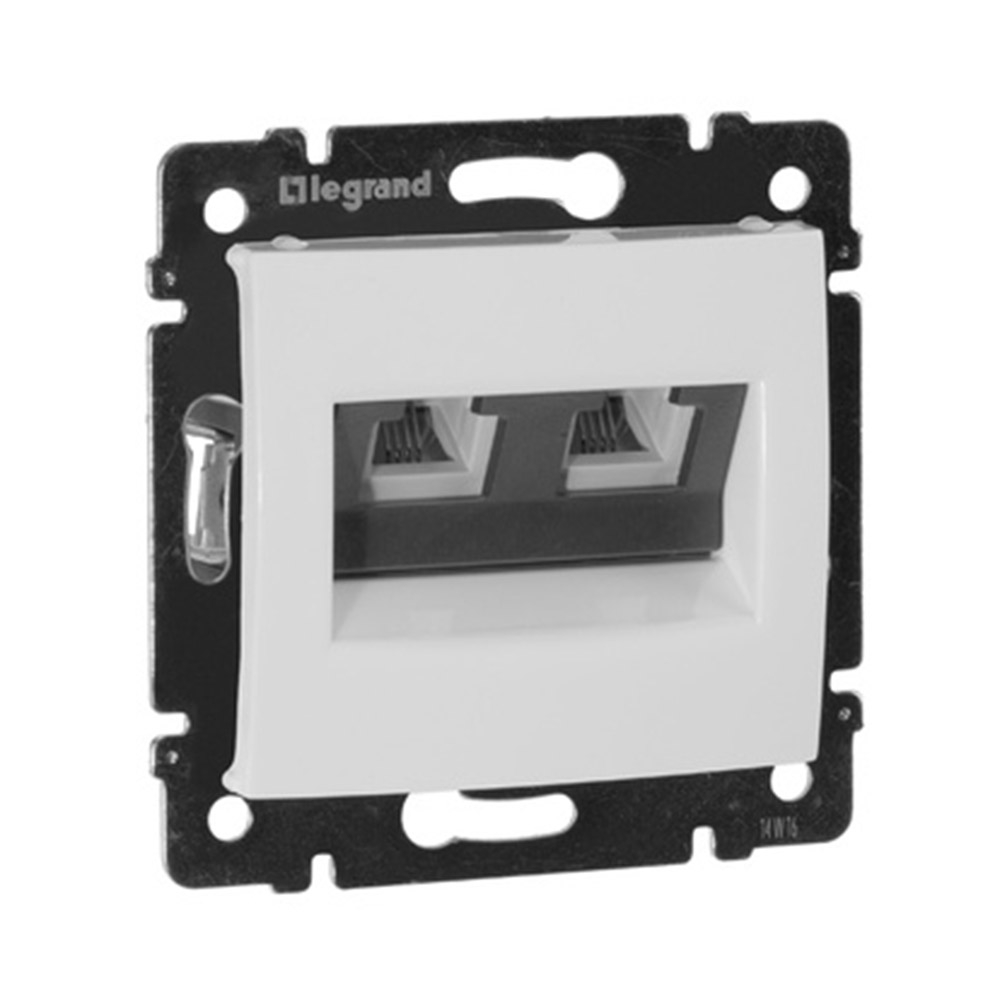 Розетка телефонная Легранд Валена 774439 имеет два отдельных выхода стандарта RJ11 (4 контакта). Подключение телефонного кабеля к розетке происходит путем поворота контактного механизма на 1/4 оборота. Механизм розетки оснащен самозачищающимися контактами, благодаря которым нет необходимости зачищать жилы проводов при монтаже.