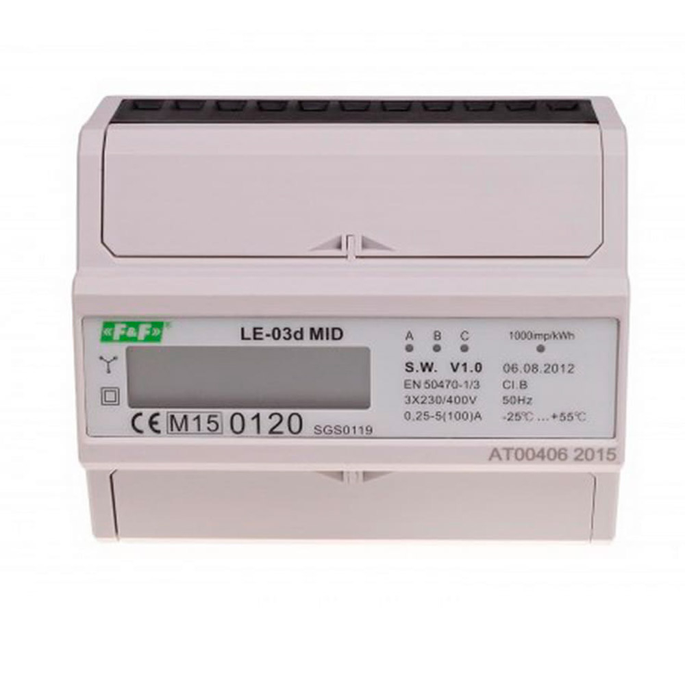 Счетчик электроэнергии F&F LE-03D, трехфазный, 100A, с LCD-дисплеем