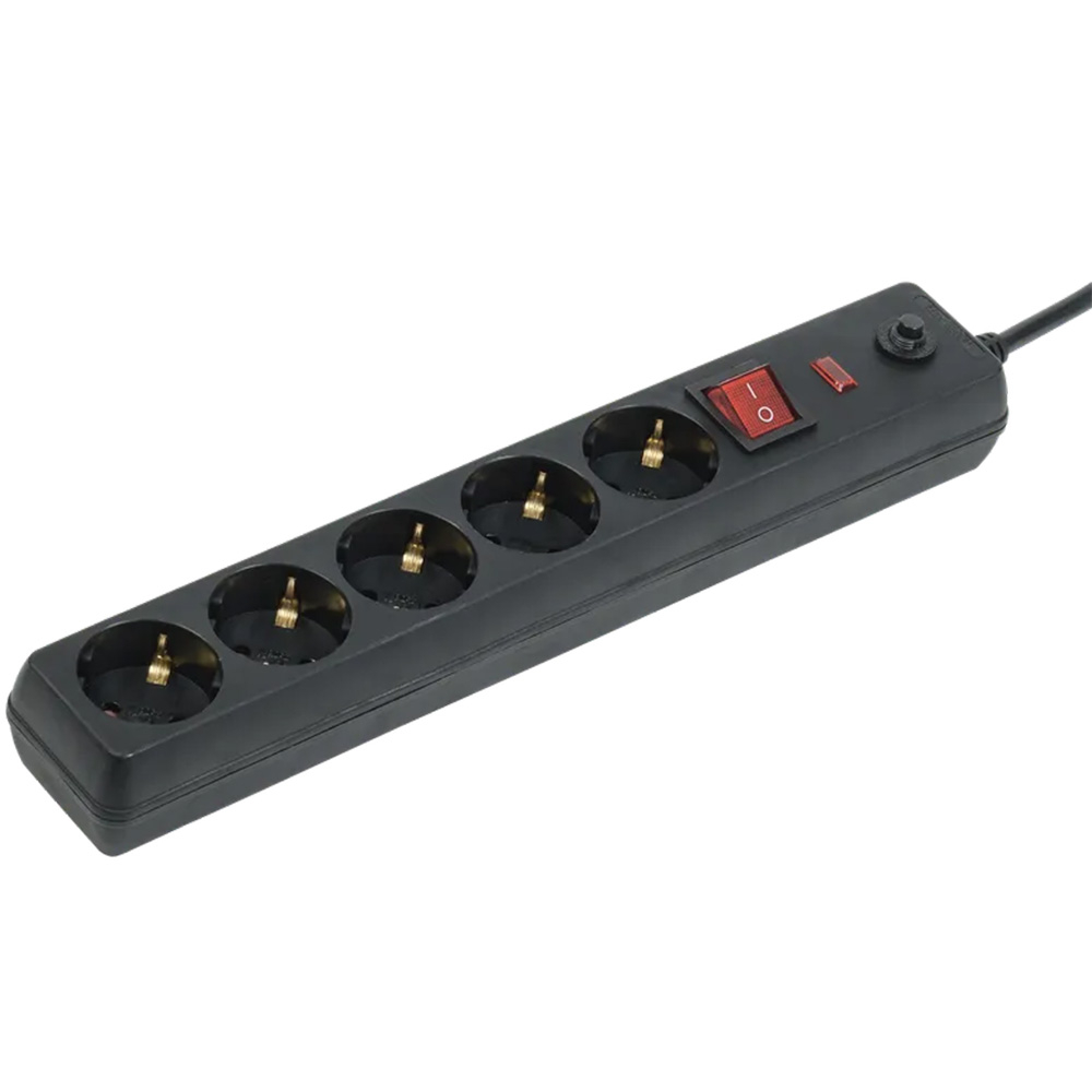 Сетевой фильтр IEK 5 гнезд 16А 3м 3х1мм2, черный, WFP10-16-05-03-ZK-K02
