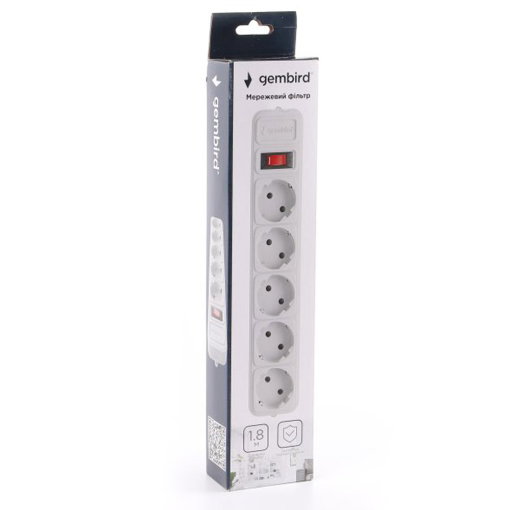 Сетевой фильтр Gembird удлинитель 5 гнезд 1.8м серый, SPG5-G-6G
