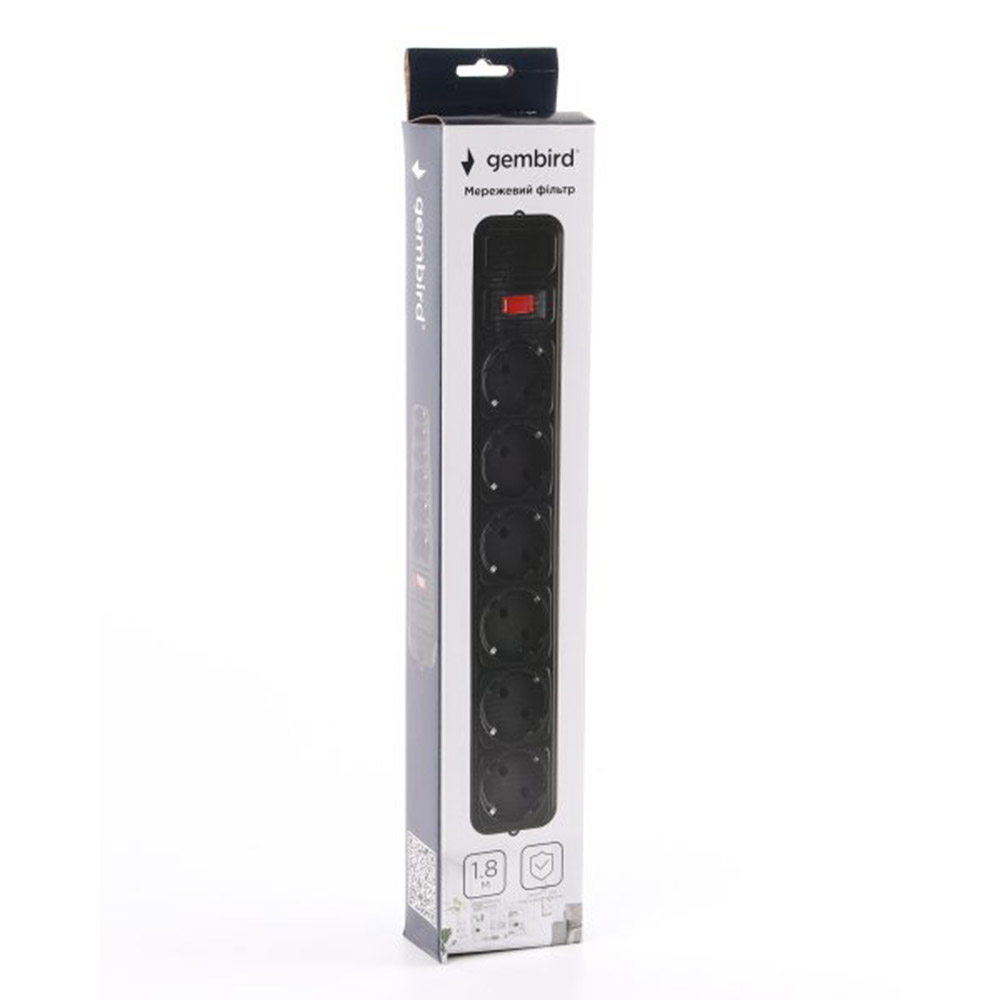 Сетевой фильтр Gembird удлинитель 6 гнезд 1.8м черный, SPG6-G-6B