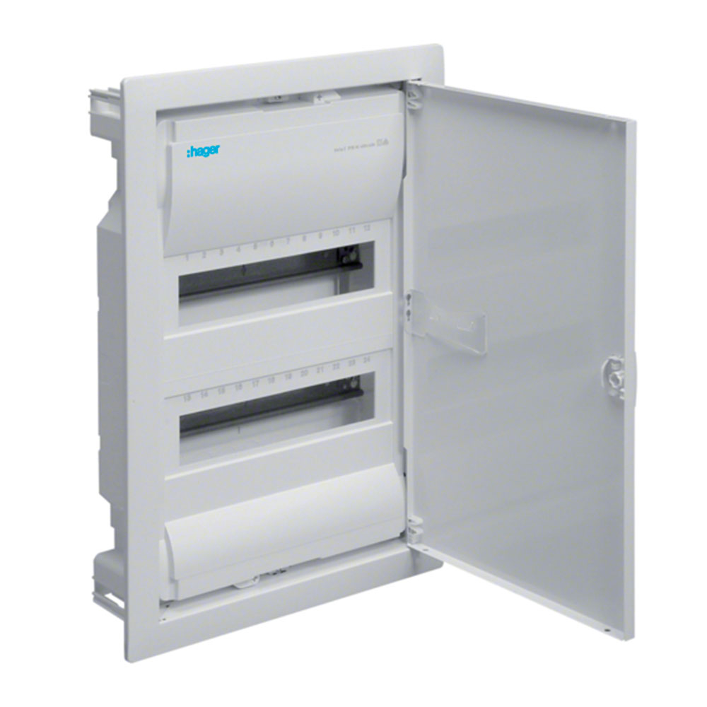 Щит встраиваемый Hager VOLTA VU24UA, 24(28) модуля, с белыми металлическими дверцами