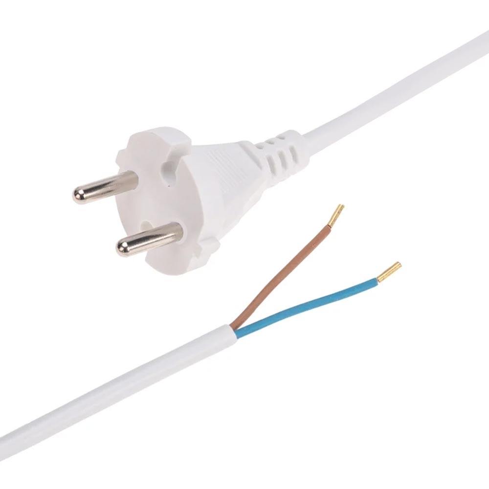 Шнур с вилкой круглой 2м белый ПВС 2х1