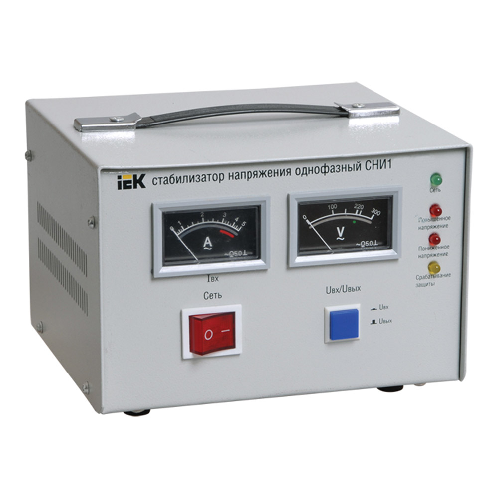 Стабилизаторы напряжения СНИ1 (однофазные)торговой марки IEK предназначены для поддержания стабильного однофазного напряжения питания нагрузок бытового и промышленного назначения 220 B , 50 Гц при отклонениях сетевого напряжения в широких пределах по значению и длительности.