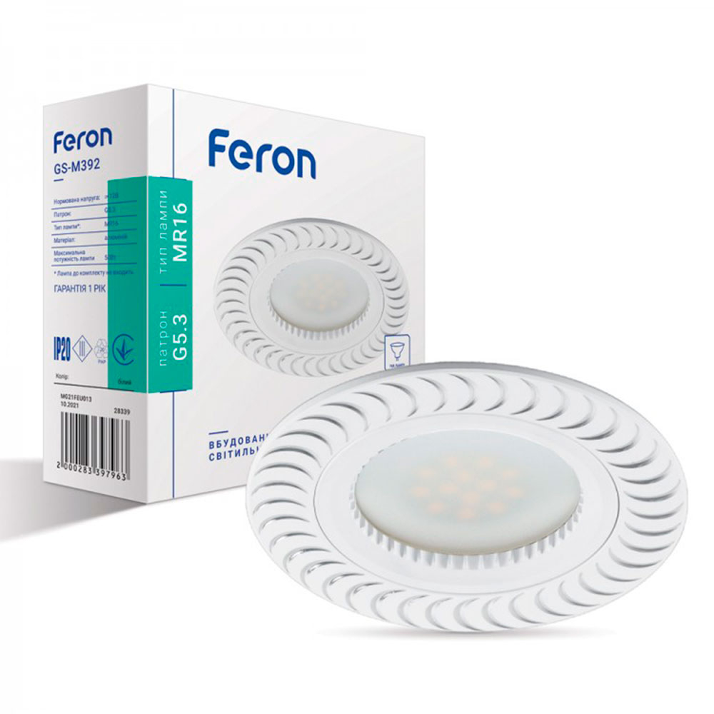 Приобрести Светильник точечный Feron GS-M392, MR-16, G5.3, белый, 4267 и многие другие товары в интернет-магазине "Электропроводка" выгодно, с доставкой, в Запорожье, Киеве и Украине по суперцене оформив заказ на сайте или позвонив нашим менеджерам по телефонам, указанным в разделе "Контакты"