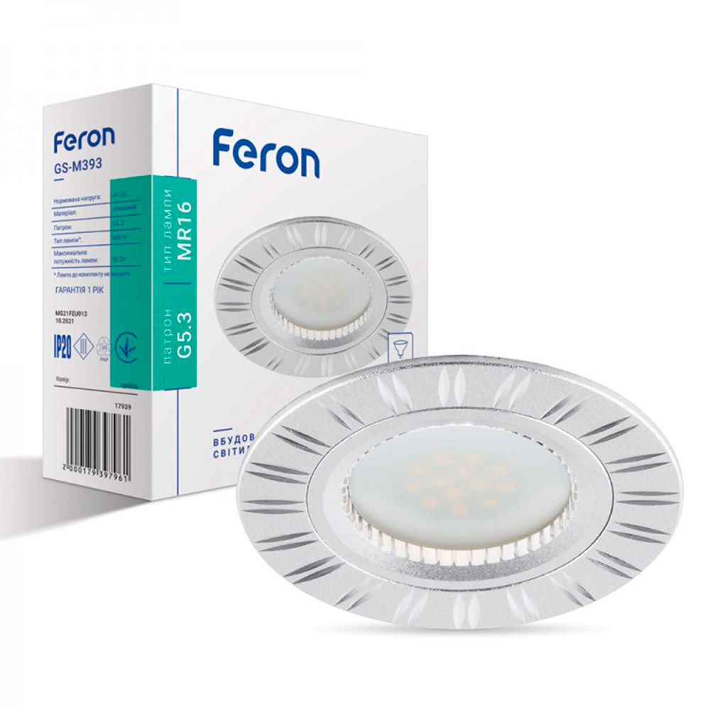 Приобрести Светильник точечный Feron GS-M393, MR-16, G5.3 серебро, 3006 и многие другие товары в интернет-магазине "Электропроводка" выгодно, с доставкой, в Запорожье, Киеве и Украине по суперцене оформив заказ на сайте или позвонив нашим менеджерам по телефонам, указанным в разделе "Контакты"