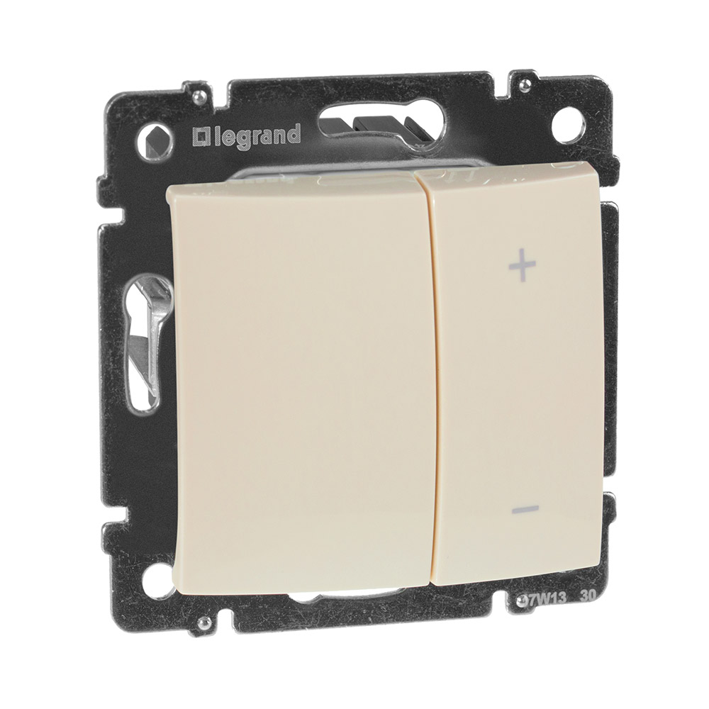 Светорегулятор 774174 используется для работы с лампами накаливания, с галогенными лампами 230V~, а так же с низковольтными галогенными лампами (с ферромагнитным трансформатором). Номинальная мощность светорегулятора 40-600Вт. Диммер Легранд Валена 774174 устанавливается в стандартную монтажную коробку скрытого монтажа.