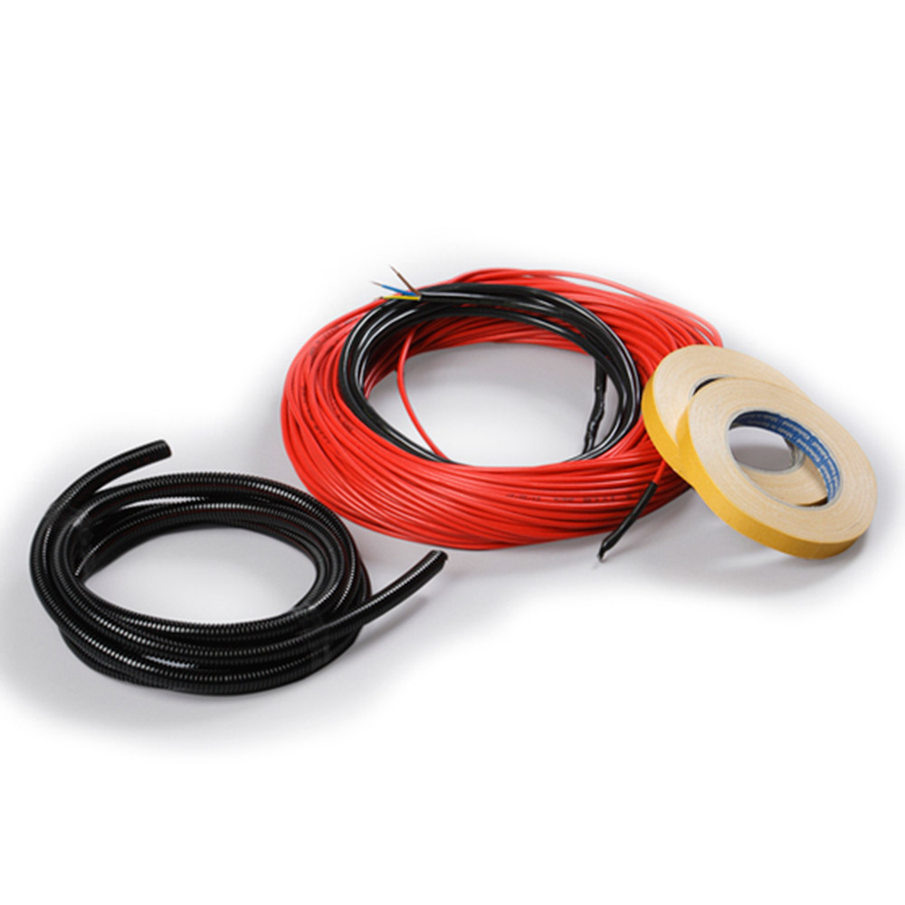 Комплект, предназначенный для прямого и комфортного отопления пола в помещениях площадью 1-20,6 м². Особенно удобен для помещений неправильной формы. Может укладываться в тонкую стяжку или слой плиточного клея. Круглый кабель диаметром 4,2 мм. Может быть использован практически с любым материалом покрытия пола. Комплект включает в себя нагревательный кабель с концевой муфтой, соединенный с питающим кабелем (длиной 3 м), липкую монтажную ленту и гофро-трубку. Для домов с низким єнергопотреблением удельная мощность составляет 80Вт/кв.м.