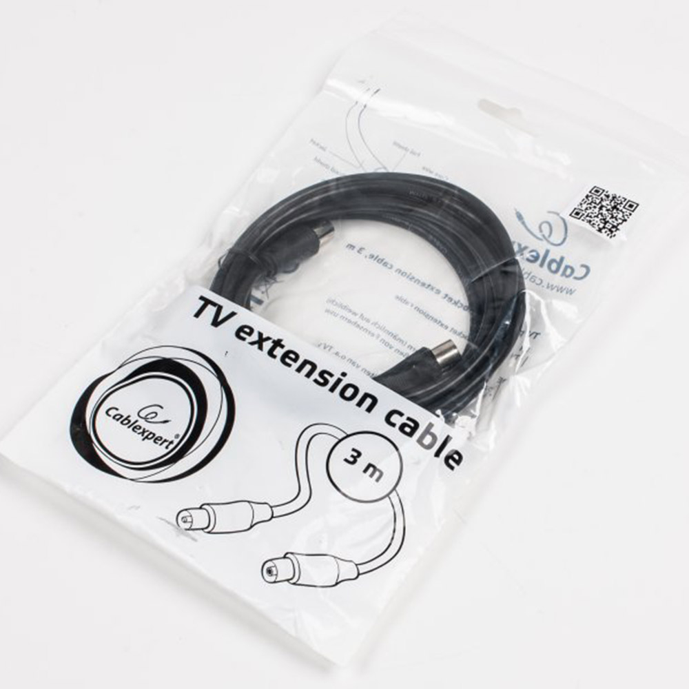 Антенний кабель-подовжувач Cablexpert CCV-515-3M, 75 Ом, 3 м, чорний