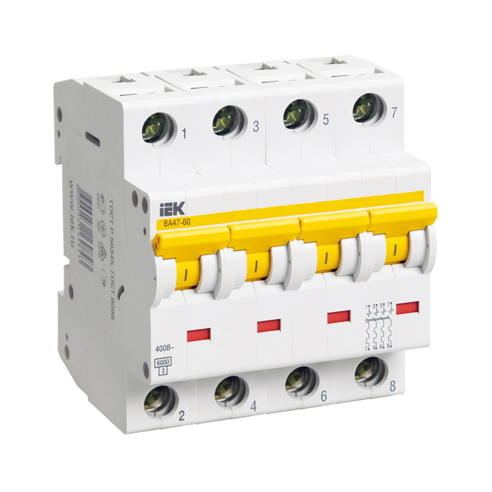 Автоматы серии ВА 47-60 (MVA41-4-010-C) применяются для автоматического отключения источника питания при возникновении сверхтоков. Автоматы ВА47-60 могут быть рекомендованы для использования в квартирных и этажных щитках, а также в учетно-распределительных щитах административных и жилых зданий. Автоматические выключатели ВА 47-60 снабжены механизмом свободного расцепления новой конструкции, что обеспечивает быстрый разрыв главных контактов. Преимуществами автоматических выключателей данной серии являются: возросшая прочность корпуса благодаря монолитной лицевой панели; наличие двух типов защиты от сверхтоков (тепловой и электромагнитной); возможность двойного присоединения PIN и FORK как со стороны сети «сверху», так и со стороны нагрузки «снизу», что даёт возможность равномерно распределить нагрузку и снизить тепловые потери; независимый индикатор положения контактов; защелка на DIN-рейку с двойным фиксированным положением; широкий диапазон рабочих температур (от - 40°С до + 50°С); удобство включения/выключения автомата за счет широкой рукоятки; насечки на контактных зажимах, снижающие тепловые потери и увеличивающие механическую прочность соединения.