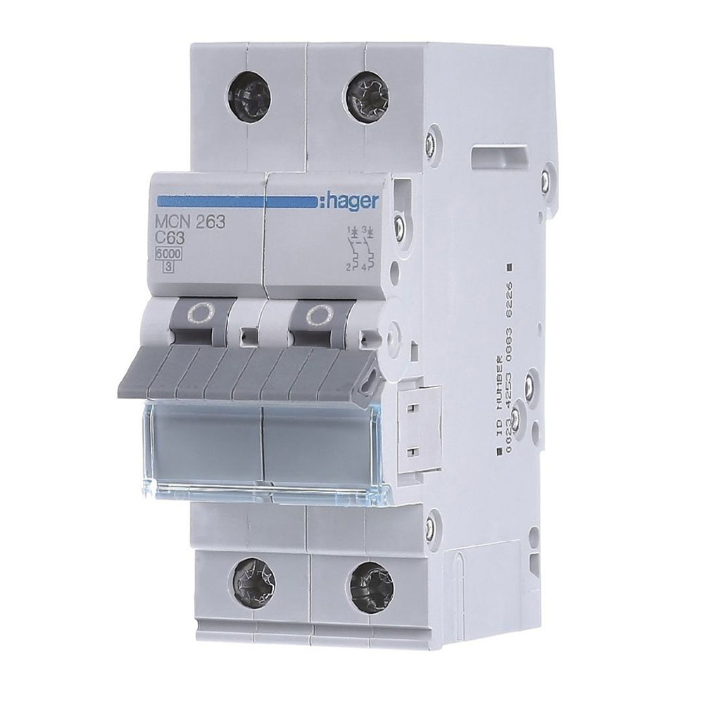 Автоматичний вимикач HAGER MCN263, 2P, 63A, С 6kA, 2M