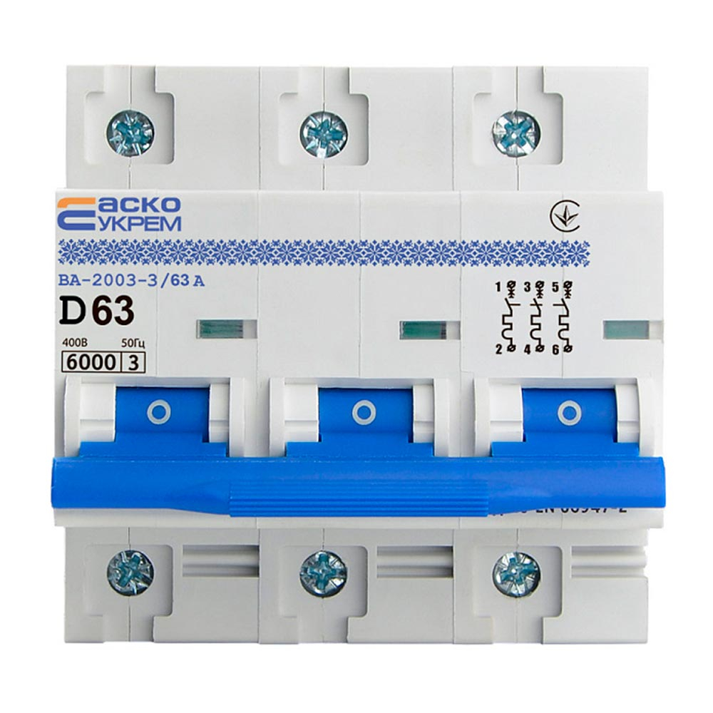 Автоматичний вимикач АСКО-УКРЕМ ВА-2003 3р, D 63А, A0010030002