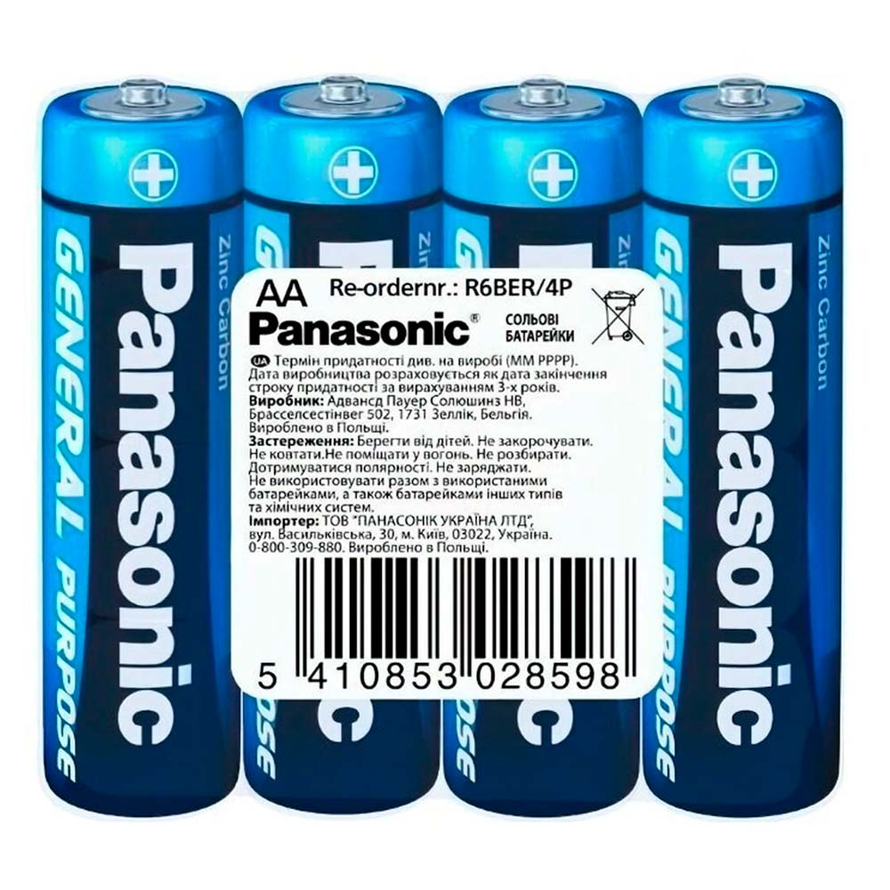 Батарейка PANASONIC R 6 коробка 1х4 шт. AA*4Sh сольова