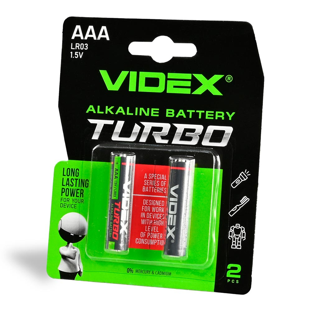 Батарейка лужна VIDEX LR03T/AAA Turbo 2pcs blister, 24239