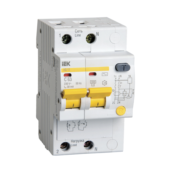 Диференціальний автоматичний вимикач IEK АД-12, 2р, 10А, 10mA, MAD10-2-010-C-010