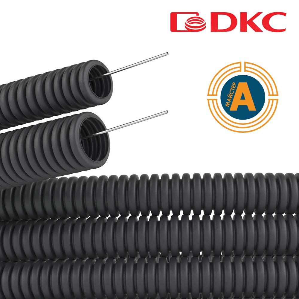 Гофротруба ДКС 91932A, матеріал - ПВХ, зовнішній діаметр - 32 мм, внутрішній діаметр - 24.3 мм, колір - чорний, стійка до УФ, з кабельною протяжкою, бухта - 25 м.
