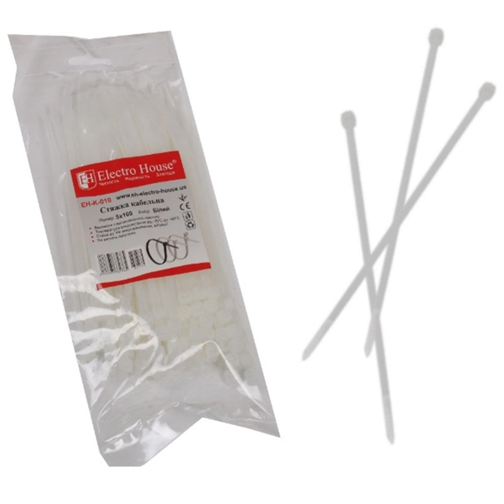 Хомут кабельний Electro House, EH-K-008, 4х300 білий