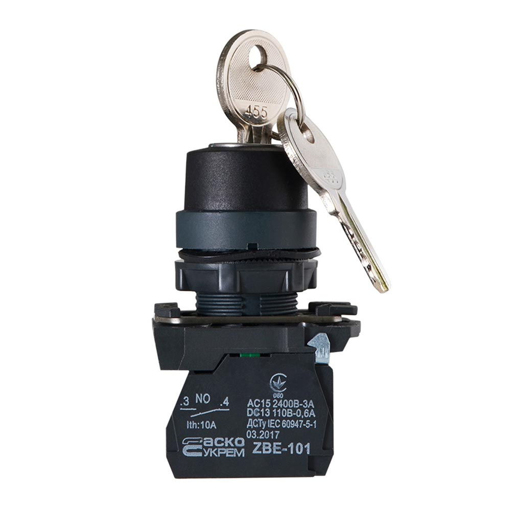 Кнопка TB5-AG21 поворотна з ключем 2-х позиційна, ACKO-УКРЕМ, A0140010153