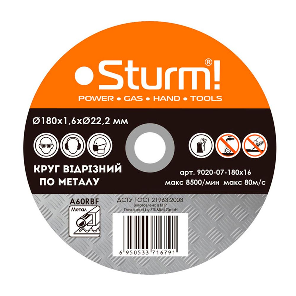 Коло відрізне по металу STURM 9020-07-180х16, 180х1,6 мм