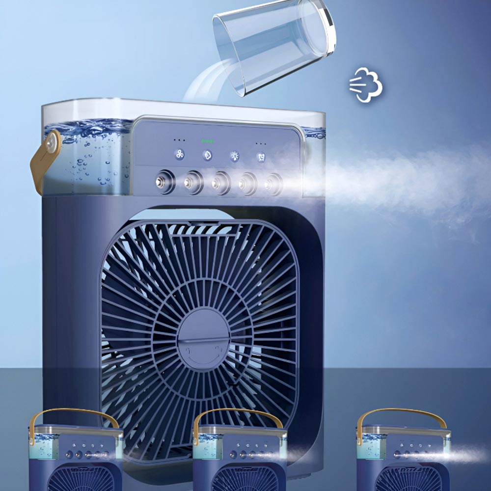 Міні вентилятор-кондиціонер з підсвічуванням 4 в 1, синій