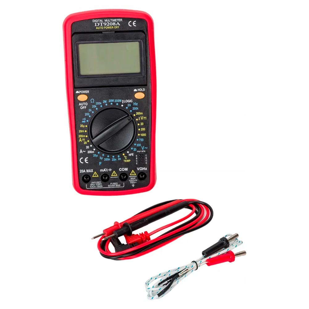 Цифровий мультиметр, дозволяє вимірювати постійну напругу до 1000 В, змінну напругу до 750 В, опір до 200 мОм, вимірює h21e транзистора при Ib=10 mkA і напруги емітер-колектор 3 В, вимірює постійну/змінну силу струму до 20 ампер, є звуковий дзвінок, дозволяє вимірювати температуру