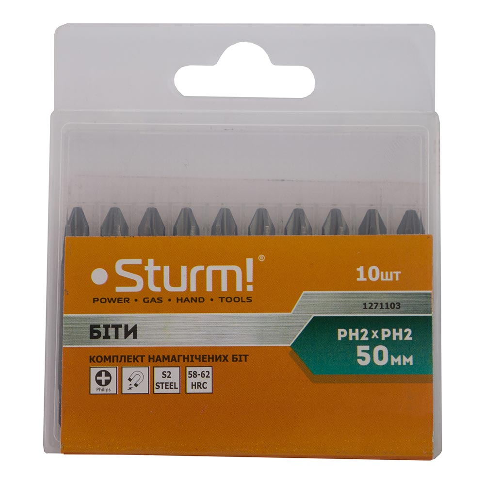 Набір біт S2 намагнічених PH2*PH2*50mm 10шт Sturm 1271103