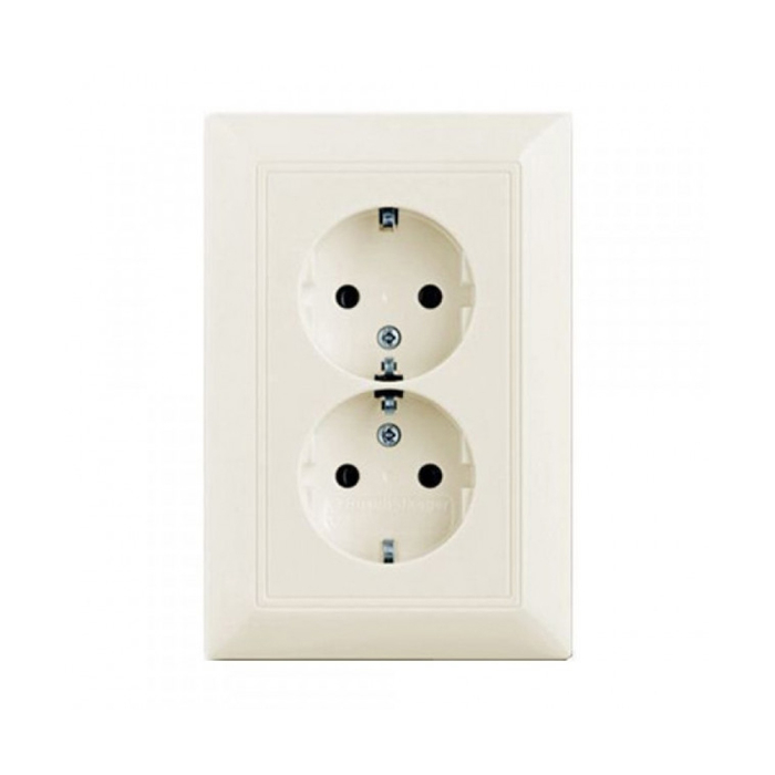 Розетка подвійна з заземленням і шторками слонова кістка Basic 55