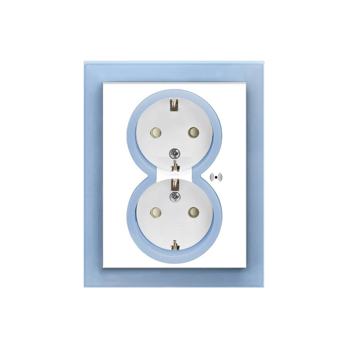 Розетка подвійна з заземленням Neo білий/синій лід